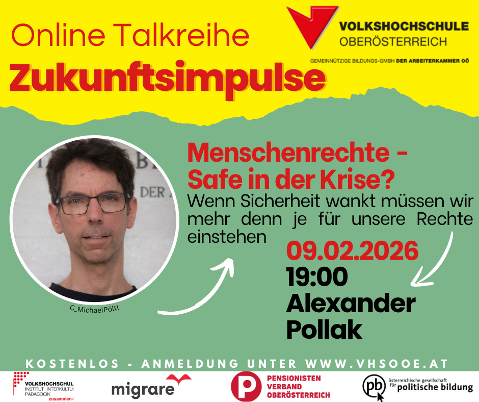 Diese Veranstaltung ist von der Österreichischen Gesellschaft für politische Bildung gefördert und findet in Kooperation mit dem Pensionistenverband OÖ, dem IIP-Institut für interkultutrelle Pädagogik und migrare statt.